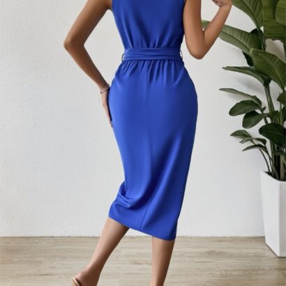 Be the first to review “Robe chemise unicolore à bouton ceinturé”